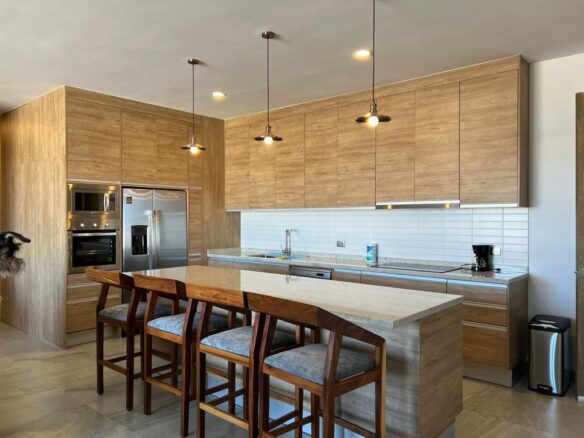 Beautiful 2 bedroom, 2 full bathrooms apartment for rent; equipped kitchen with high-end appliances. Breathtaking ocean view. Located in Tramonti Cabo San Lucas Corridor, steps from Amaranto School and Santa Carmela Market.